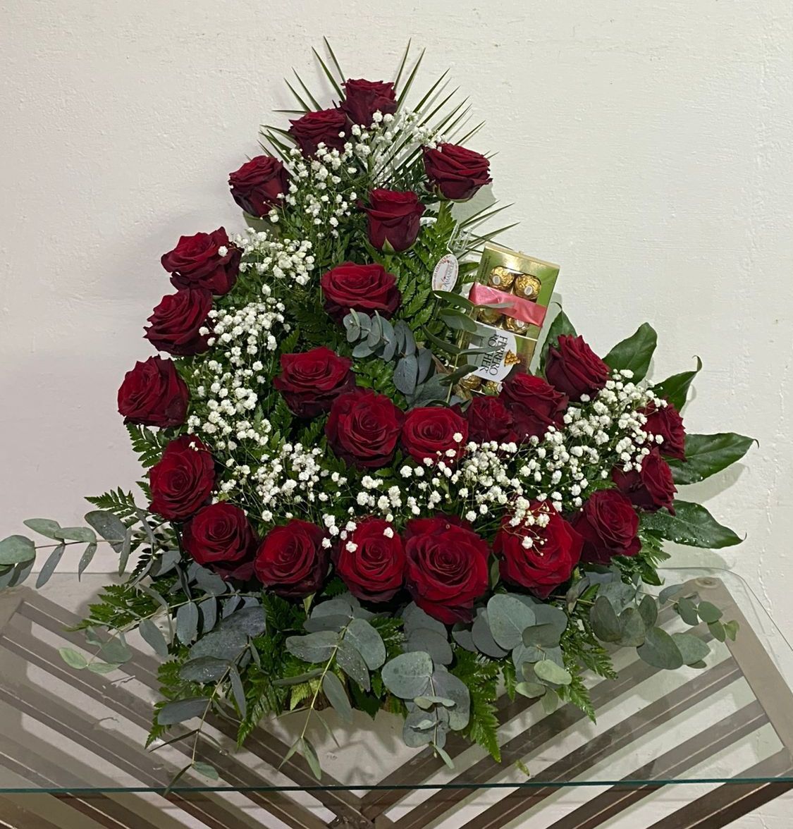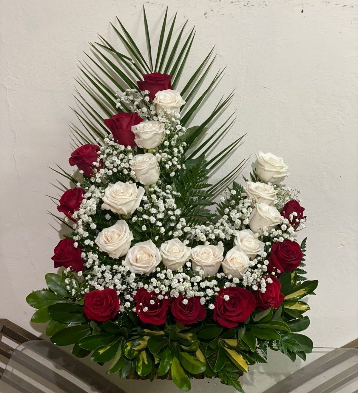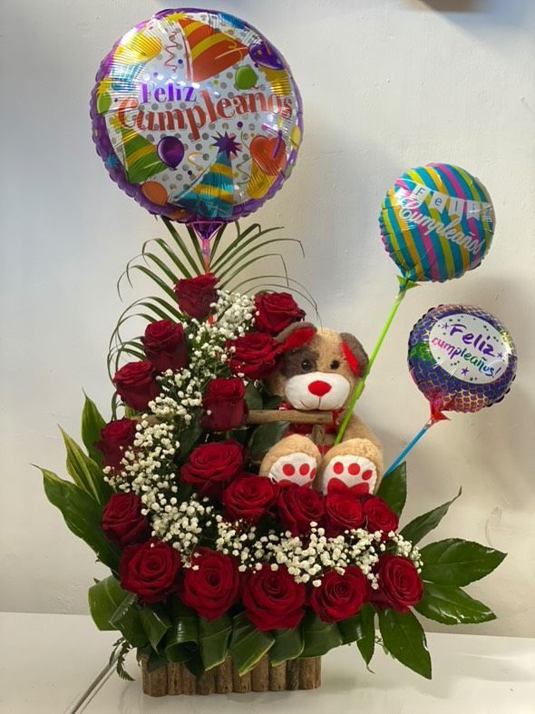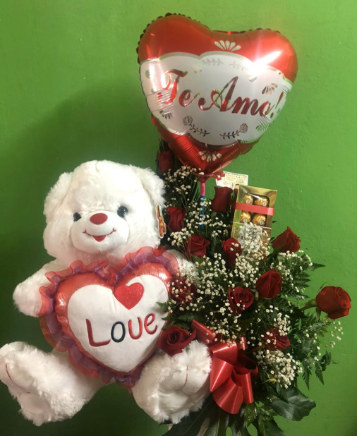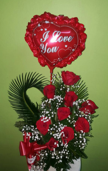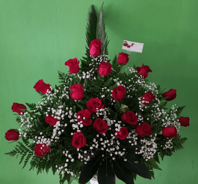 Arreglo de rosas rojas medio corazón.