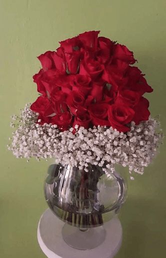 Bouquet de rosas en base burbuja de vidrio.