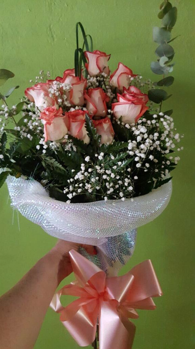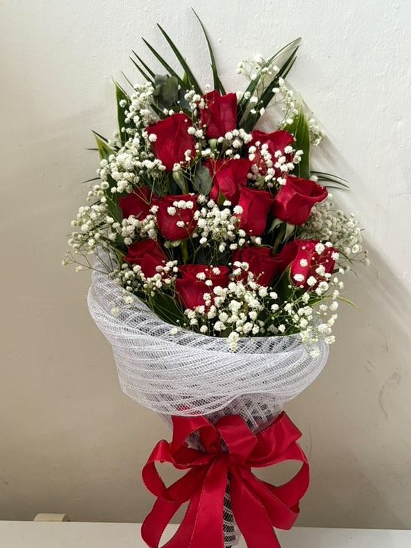 Bouquet de rosas en malla.