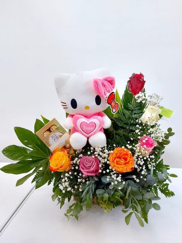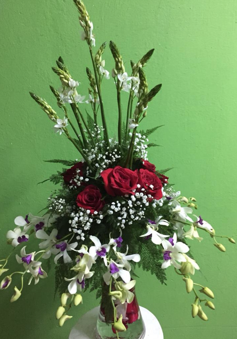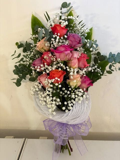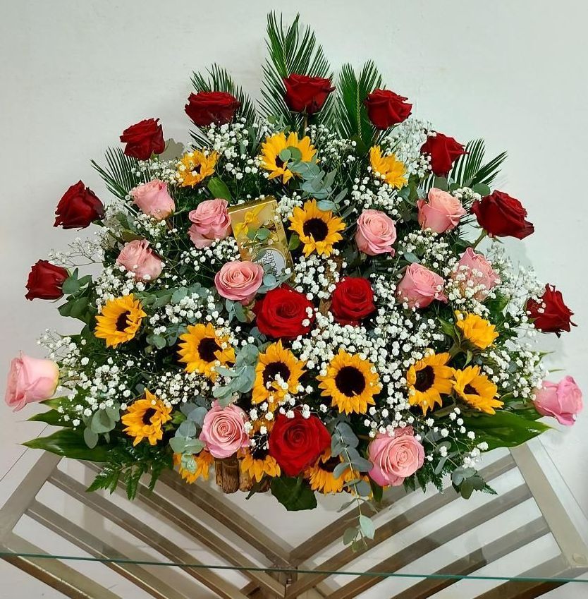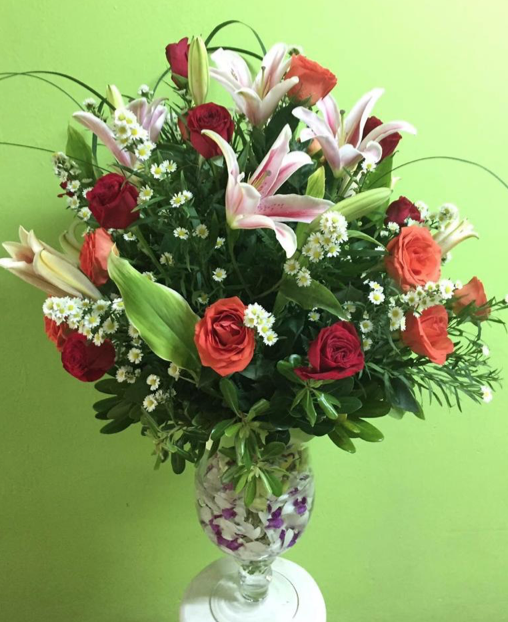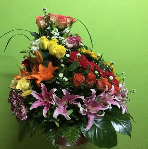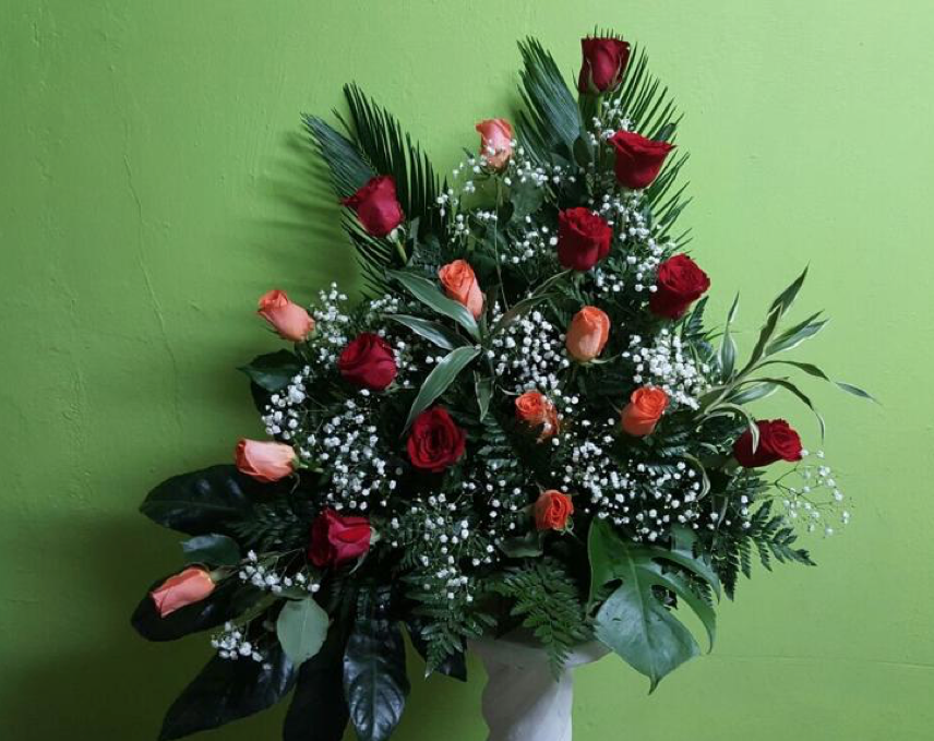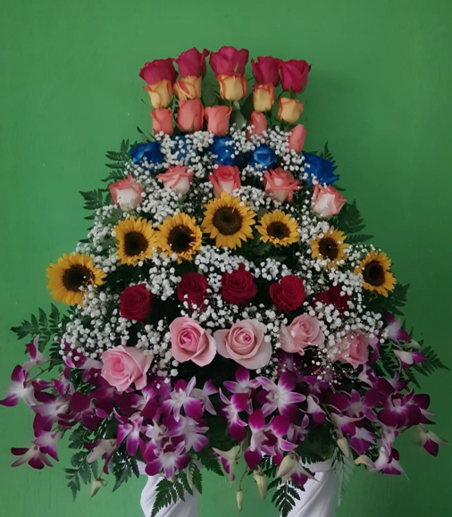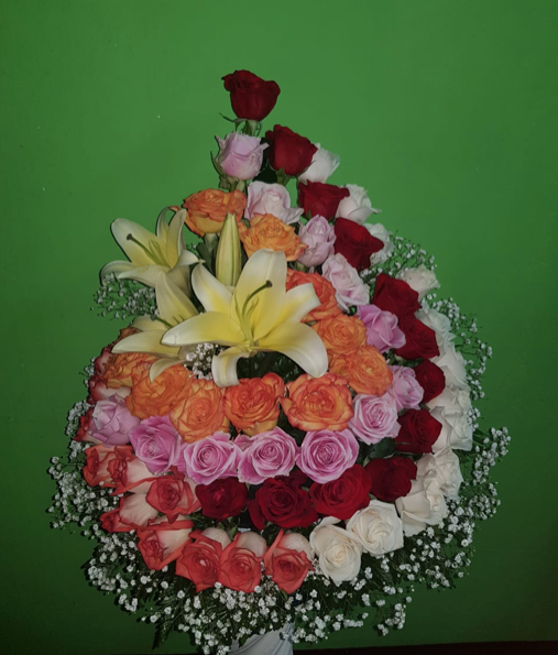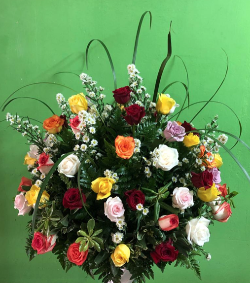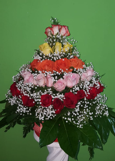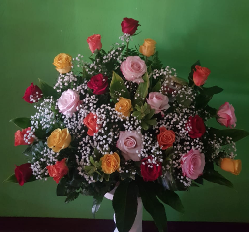 Arreglo de rosas variadas en forma circular.